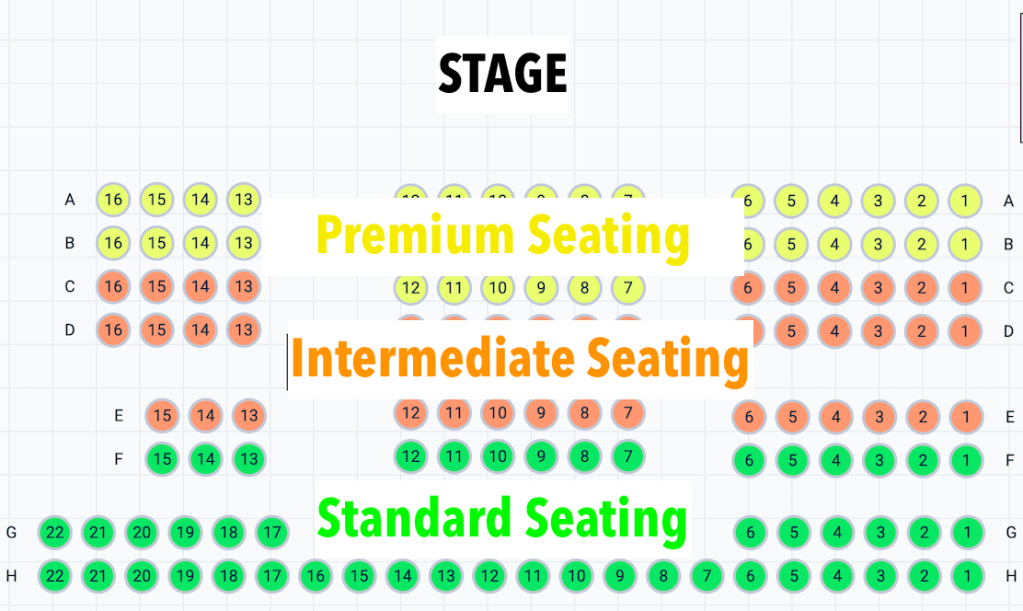 Tickets are available at the following options. Please see seating chart below for more information.