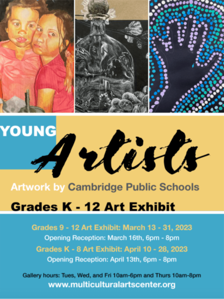 The Multicultural Arts Center welcomes back the talented students of the Cambridge Public Schools in their Young Artists Exhibition. The current exhibit includes artworks of different mediums from grades JK-12. A true show of creativity and imagination from Cambridge Public School students.